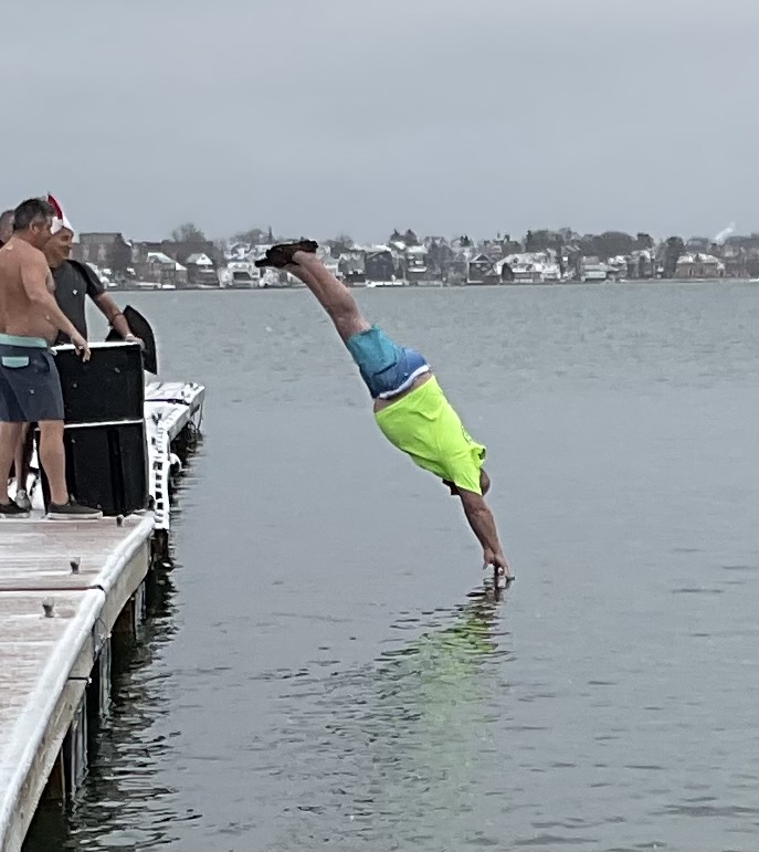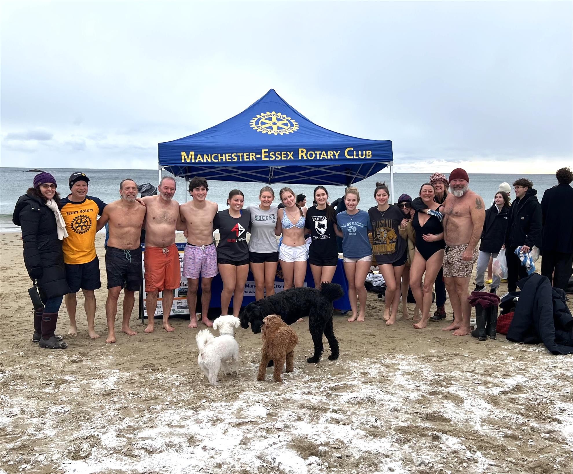 The Manchester-Essex Interact Club had a fun plunge for Polio welcoming in the new year for the second year in a row as a foundational initiative toward re-establishing their Club at the Manchester-Essex Regional High School. About 25 Rotarians and Interacters participated.