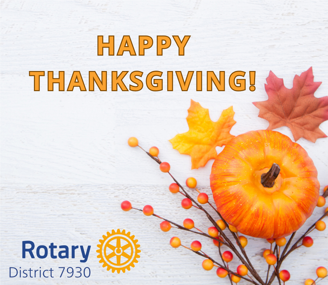 Happy Thanksgiving to all our Rotarians, families and friends from District 7930 Leadership Team.