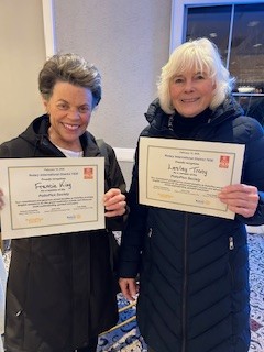 Inspired by the hopeful words of primary speaker and End Polio Now leader Mike McGovern at the World Peace and Understanding Dinner on February 12, Marblehead Harbor Rotarians Francie King and Lesley Tracy were among the newest members to join the Polio Plus Society. Pledging at least $100 per year to Rotary’s efforts to end polio, Francie and Lesley will bring their enthusiasm and the latest statistics on polio eradication back to their club members to encourage and further motivate the club’s support of Rotary’s efforts to permanently eradicate polio from the two remaining countries where it is endemic. Congratulations, Francie and Lesley!