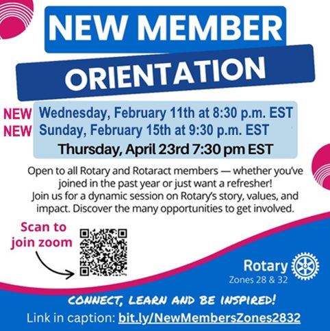 The mission of The Rotary Leadership Institute (RLI) North East America is to provide an educational opportunity for Rotarians as potential leaders. Each club President is asked annually to encourage Club members as potential Club leaders in the years ahead. Courses foster Rotary knowledge and leadership skills. It is hoped that these courses will also motivate the participants to be enthusiastic, creative and dedicated Rotarians. Our District's next RLI is being offered virtually on February 24 & 26, 2026. Register now! It is open to all Rotary members.
