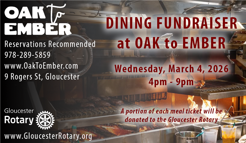 Join the Gloucester Rotary at Oak to Ember on Wednesday, March 4, 2026, 4pm-closing.