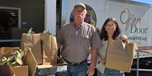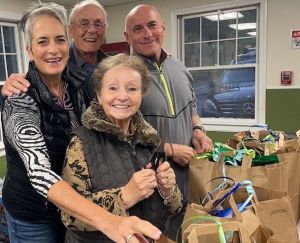 Ipswich-Rowley Rotarians continued a tradition with the Open Door of bringing cheer and laughter in a full bag of everything needed for a joyful birthday party of eight children. Birthday-in-a-Bag!For four years, Rotarians have packed 25 bags for re-distribution at the Gloucester-based food pantry. Each bag, tied with colorful ribbons, contained – Happy Birthday Banner, Cake Mix, Can of Frosting, Birthday Cake Candles, Plates, Flat Ware, Cups, Napkins, Tablecloth, Party Hats, Party Noise Makers, Party Games to Play, and a full Bag of Candy.
