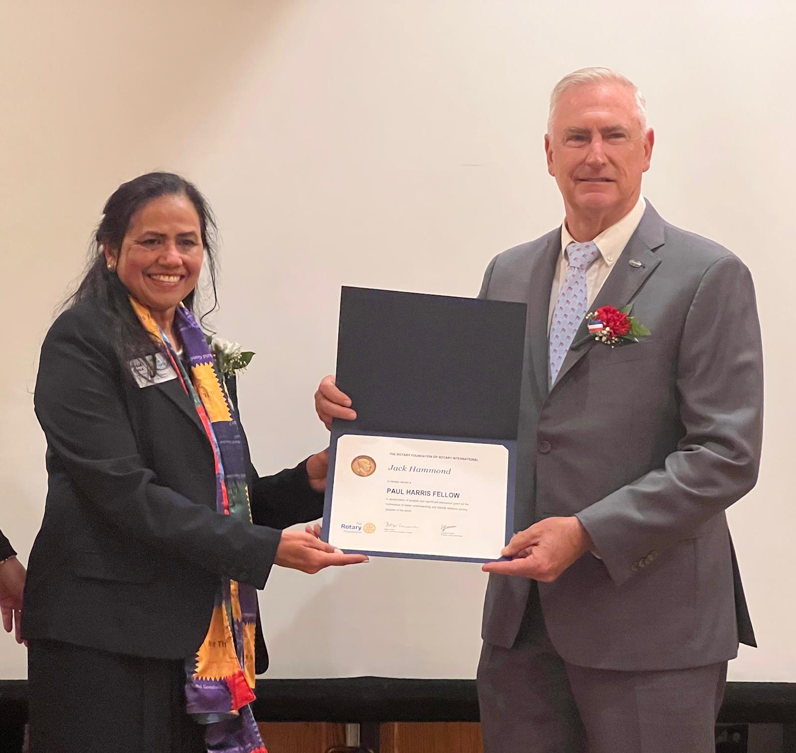 On November 12, 2025, Rotarians from across District 7930 gather to honor military veterans at the PDG Bob Wood Memorial Heroes Celebration, held at the Andover Country Club. The event recognized and celebrated veterans from throughout the district for their service and dedication to their country. Each Hero designated was presented with a Paul Harris Fellow recognition in appreciation for their service to our country.It was a wonderful turnout to acknowledge and support our Heroes, and we were particularly inspired by the powerful speeches by our guests of honor BG Jack Hammond and Rotary International Director Chris Etienne with the touching story of Micaila Britto, the presence of her Service Dog, Rabbit. We were privileged to have special guests from Rotary International Celeste Herbert and Mary Shackleton and PDG Bob Wood’s widow Susan Wood.