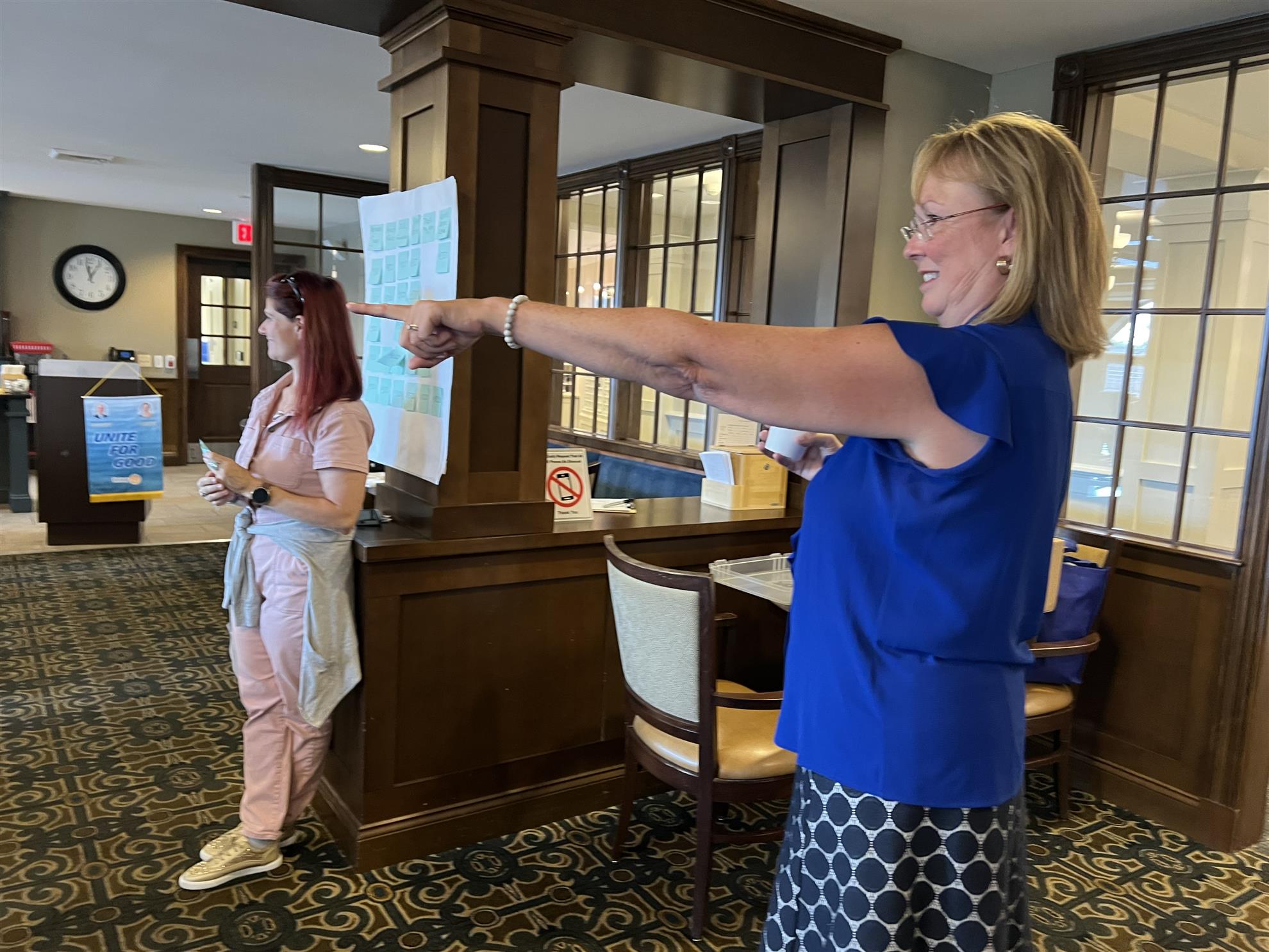 Pictured above is the winning team who got to sign the book plates. Pictured below are Amy Luckiewicz and Christine Travers calling out for an answer.