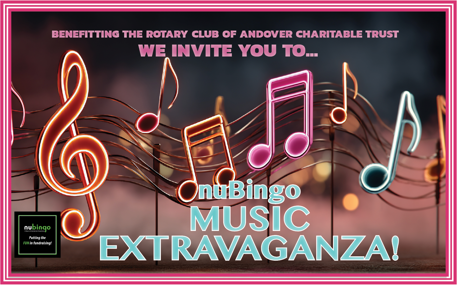 The Rotary Club of Andover is proud to commemorate 30 years of service, fellowship, and impactful community initiatives. To mark this milestone, we invite you to join us for an unforgettable evening of music, dancing, and high-energy fun at the NuBingo Music Extravaganza, a fundraising event celebrating three decades of making a difference in Andover and beyond.Thursday, November 13, 2025 – Doors open at 6:00 PM, event starts at 7:00 PM at DoubleTree Hilton, Andover.
