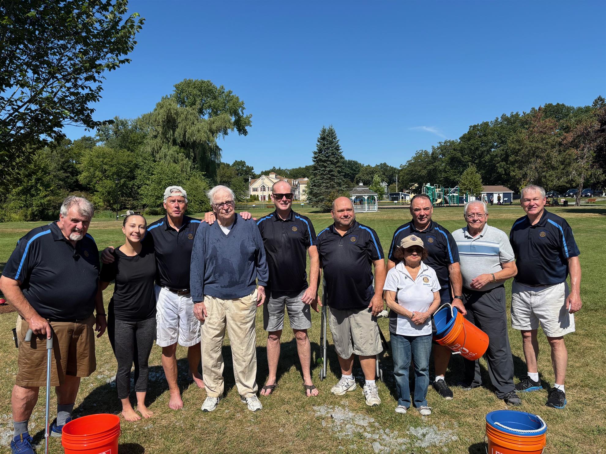 The Wilmington Rotary Club held their annual Community Ice Bucket Challenge at Wilmington's Rotary Park on Saturday, August 24. Many brave participants, including 8 Rotarians, had the pleasure of dumping ice water over their heads to raise funds for the Angel Fund of Wakefield. The Angel Fund is an organization committed to finding a cure for ALS (Amyotrophic Lateral Sclerosis), also known as Lou Gehrig’s disease. Through the work of Dr. Robert Brown at the UMass Medical Center, progress has been made but the cure hasn’t yet been achieved, and additional funds are still needed.We continue to raise funds for this worthy cause - donations may be mailed to the Wilmington Rotary Club, P.O. Box 503, Wilmington, MA 01887 or sent via Venmo @Wilmington-RotaryClub.