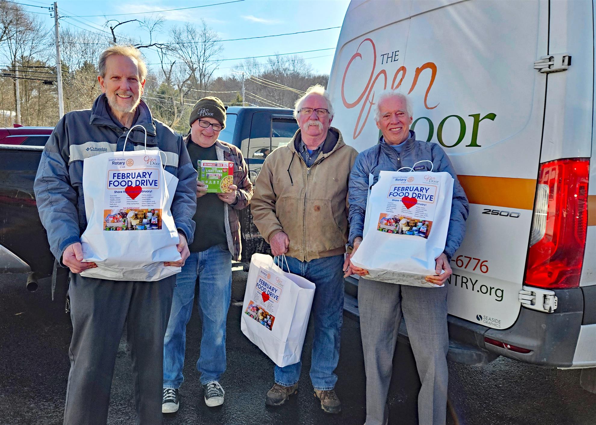 Again this year, Ipswich-Rowley Rotary received strong community support for our annual ‘February Food Drive’. According to Chris Davis, Ipswich-Rowley Rotary food drive organizer, “Our total donation was 1645 pounds of food to benefit ‘The Open Door – Ipswich Community Food Pantry’. We exceeded our expectations and increased this year’s donations by several hundred pounds.”